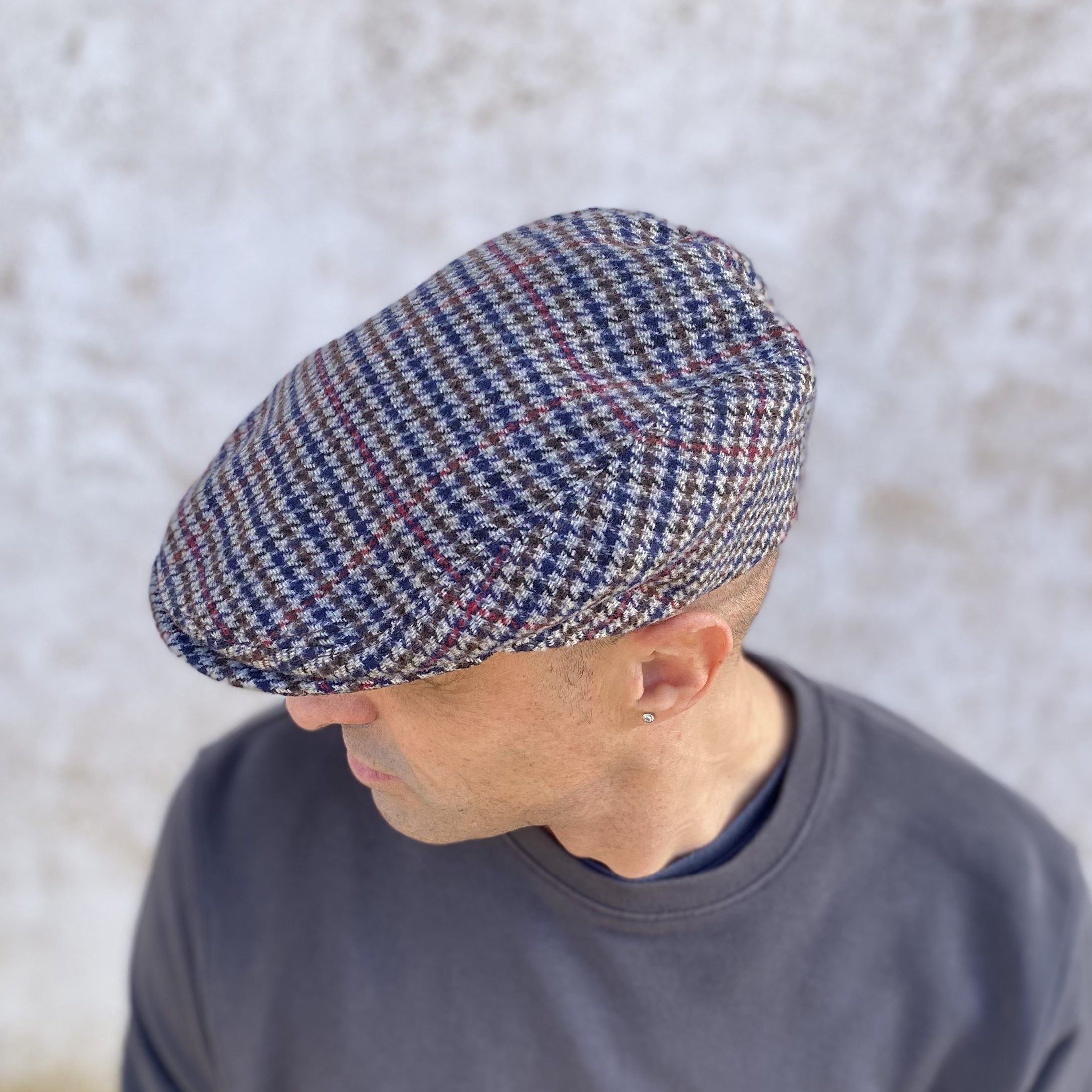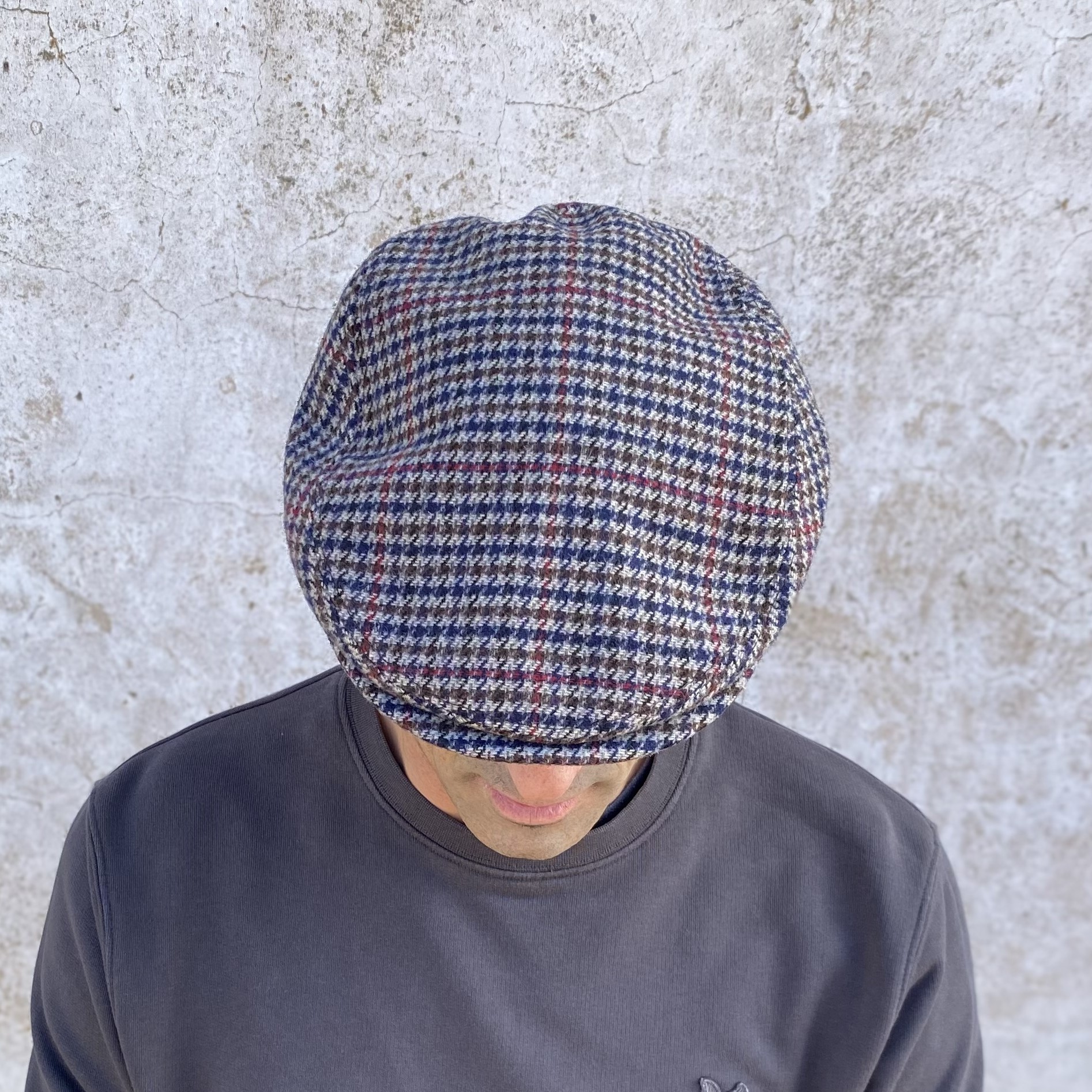 GORRA CAMPERA DE ESTILO CLÁSICO EN FIELTRO DE LANA CON ESTAMPADO DE CUADRITO. ES UNA GORRA CÓMODA Y ABRIGADA QUE SIENTA MUY BIEN.