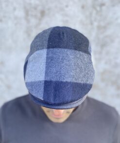 GORRA CAMPERA ESTILO CLÁSICO CON ESTAMPADO DE CUADRO EN COLOR AZUL ES UNA GORRA CÓMODA Y ABRIGADA, ELABORADA EN FIELTRO DE LANA, QUE SIENTA MUY BIEN.