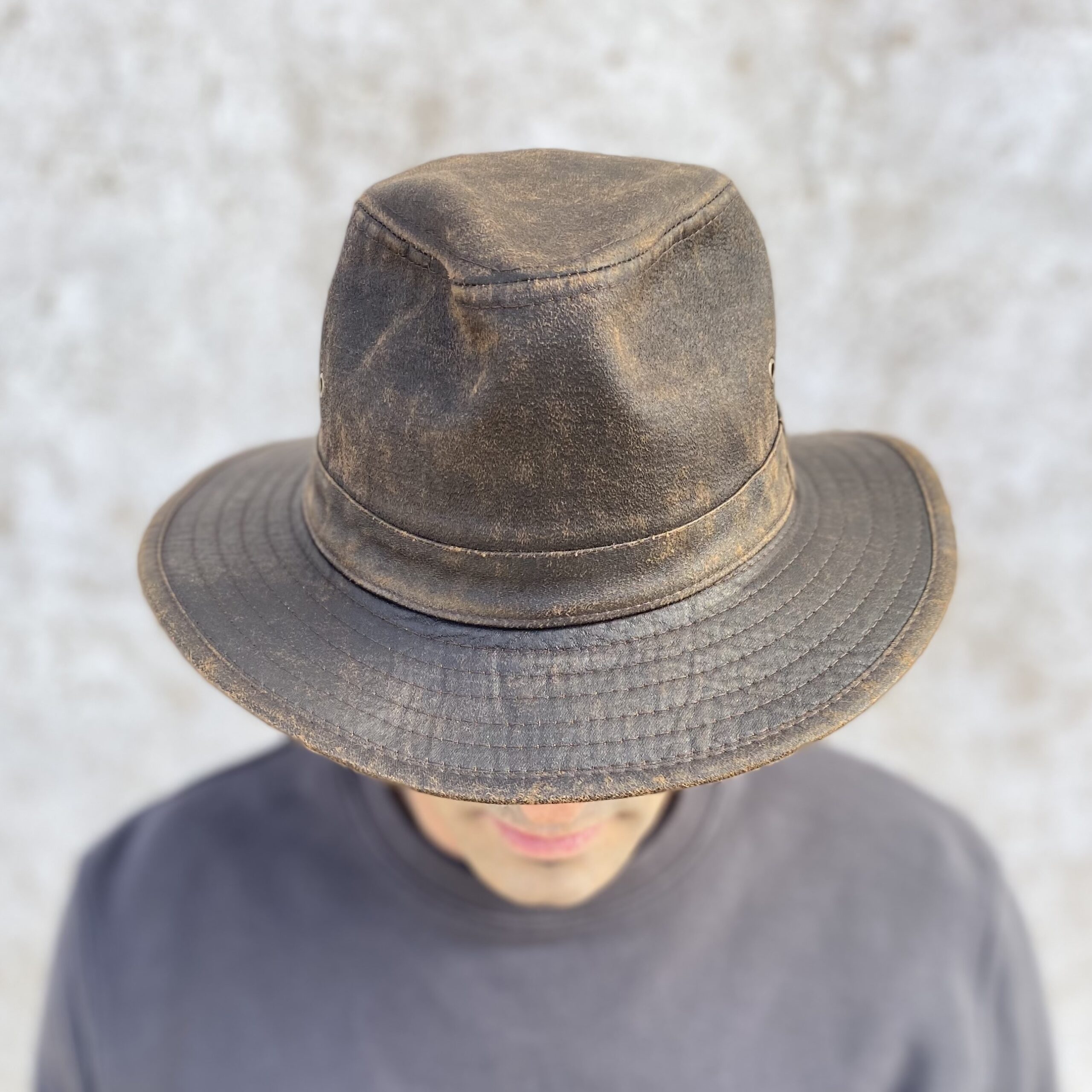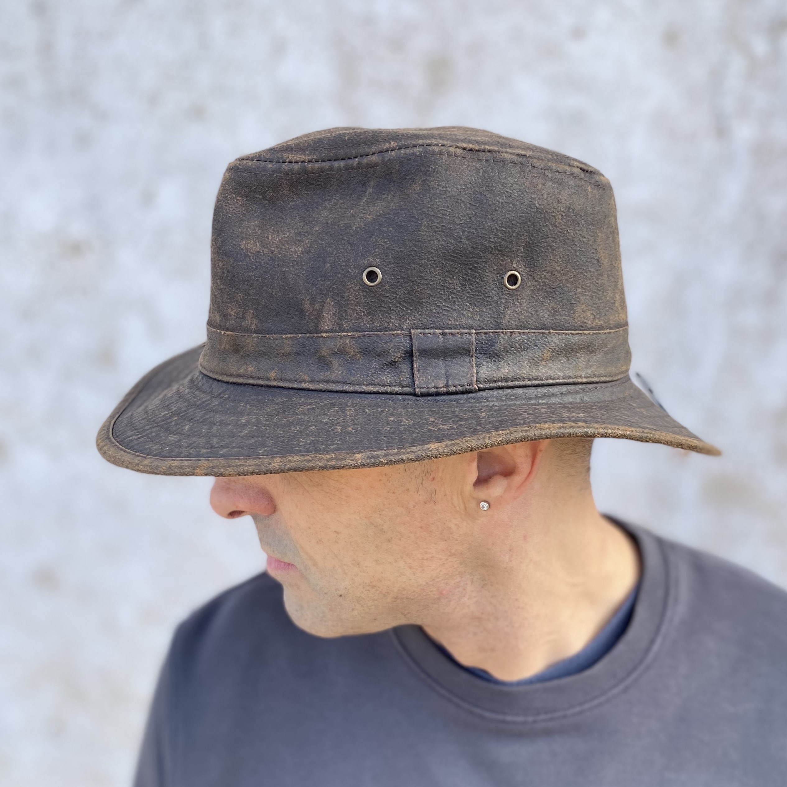 SOMBRERO ESTILO INDIANA DE PIEL SINTÉTICA CON INTERIOR FORRADO. IMPERMEABLE.